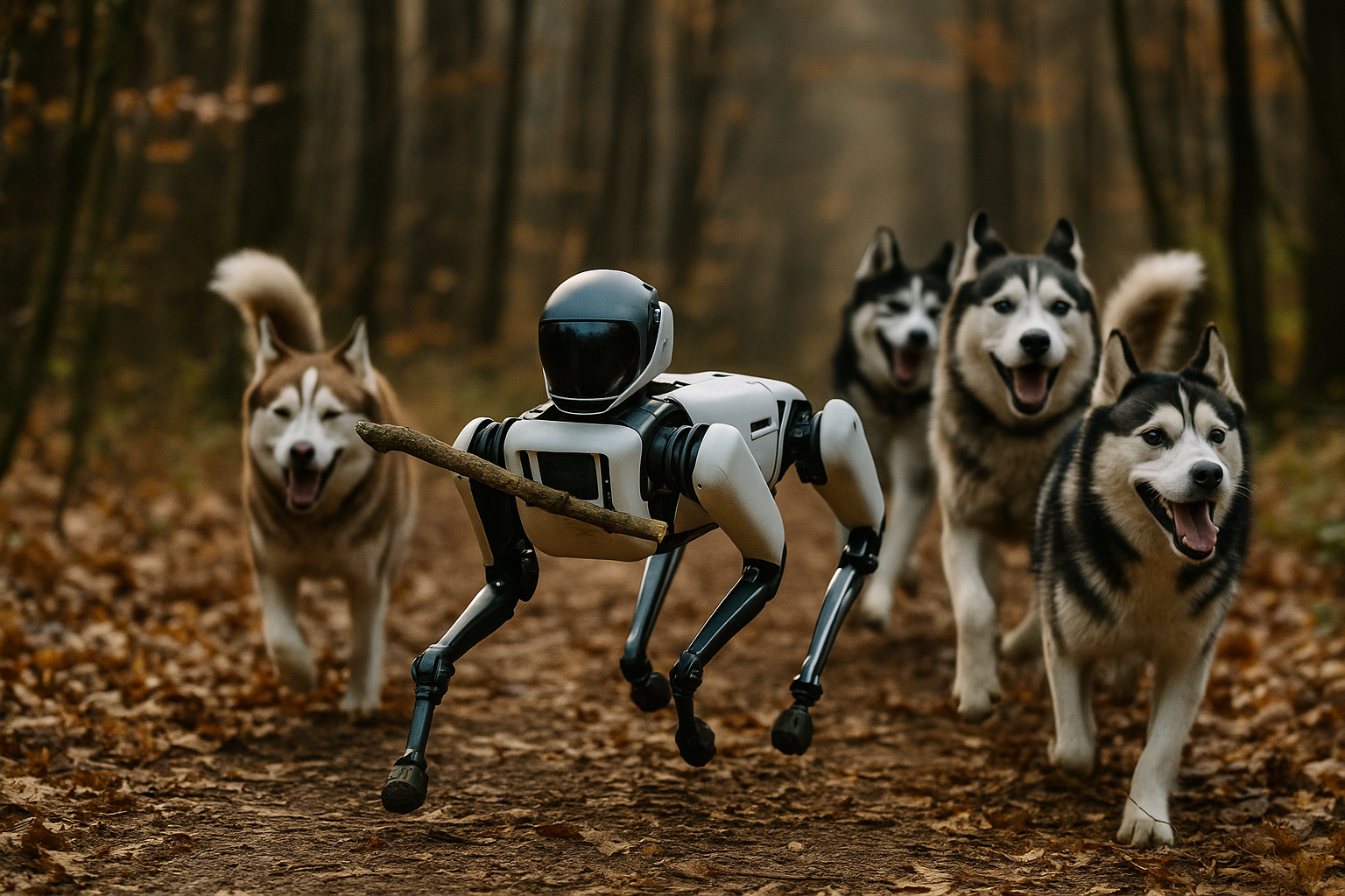 Two days later, a local dog walker spotted the robot happily playing fetch in a forest clearing — albeit chasing sticks on command and occasionally overheating.