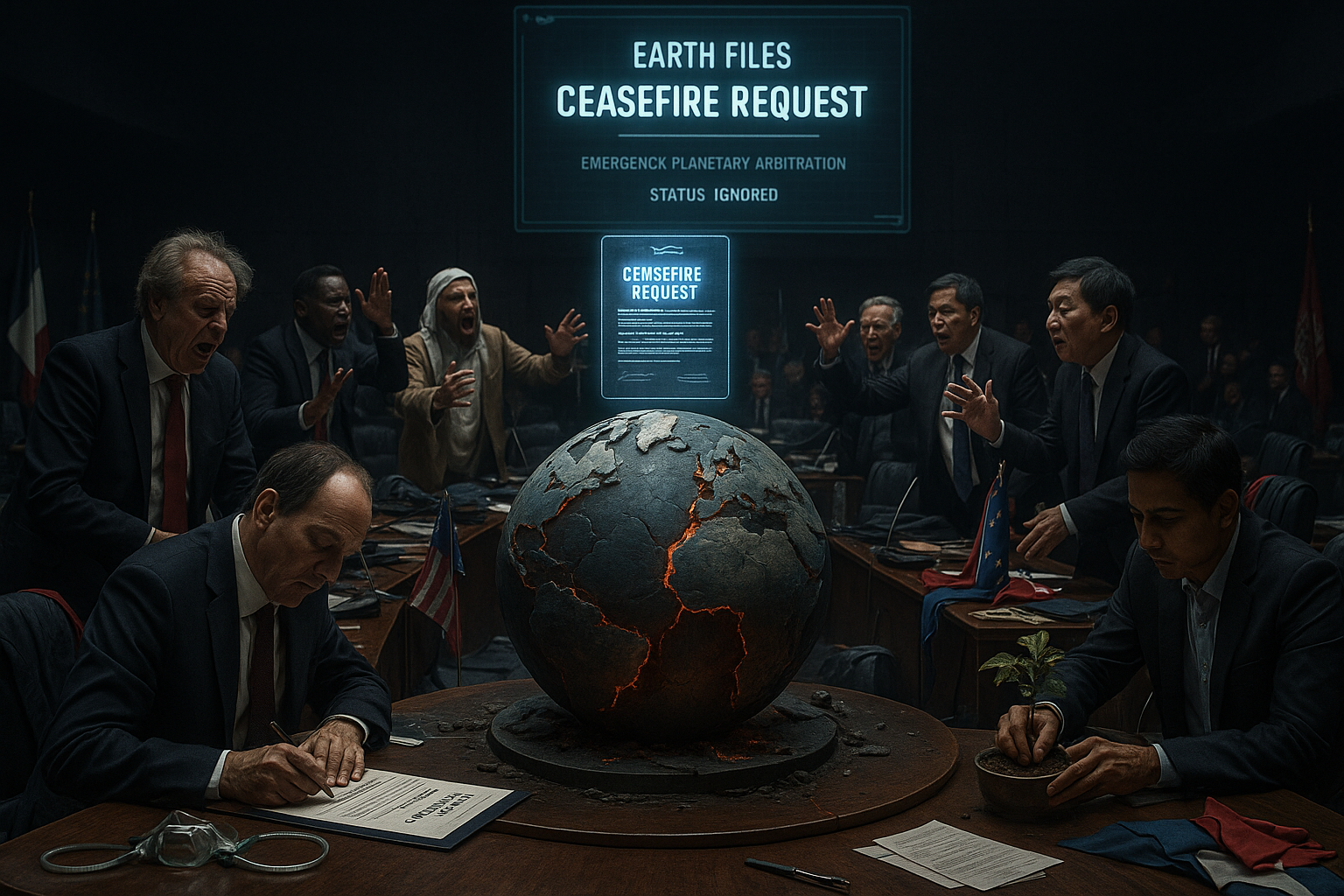 In a desperate move to end rising global tensions, Planet Earth has officially filed a ceasefire petition with all of humanity, citing exhaustion, emotional distress, and “a severe case of climate indigestion.”